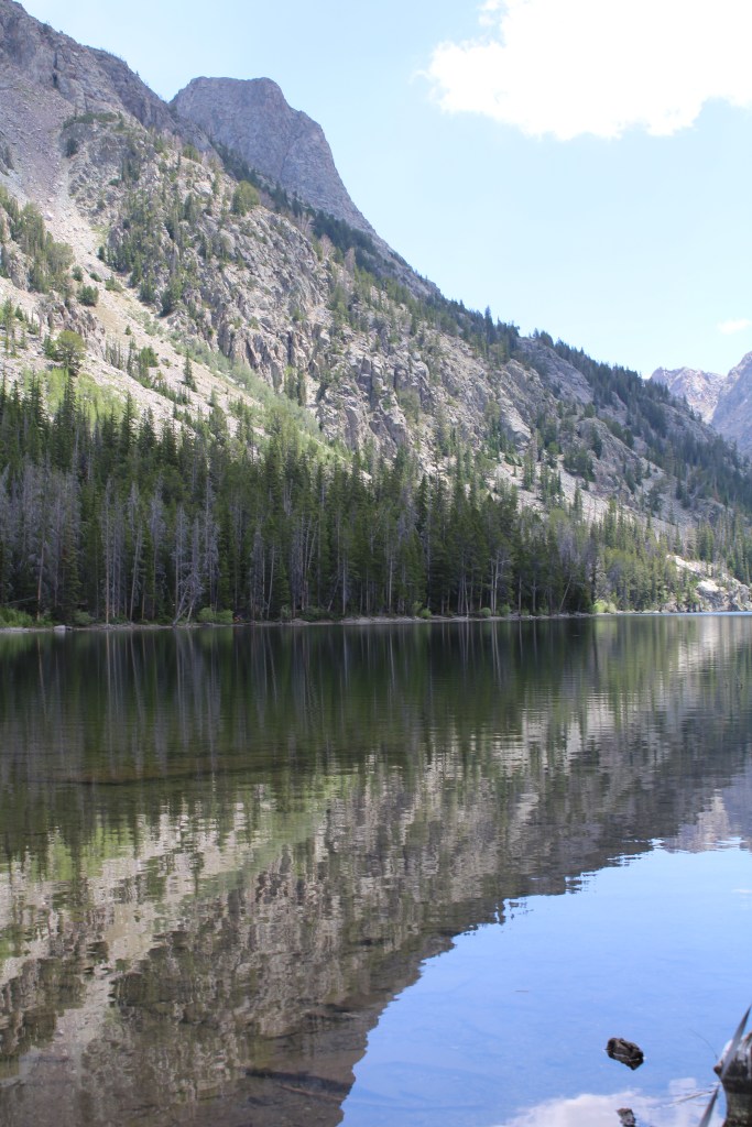 Making our way to Slide Lake meant climbing switchbacks for about 1000 feet of elevation over the course of the 4 miles. It was a challenging a hike and many times I was thinking that we should turn around. I reminded myself that the best views took the most work to get to and this was a destination that we chose, so we pushed on. We ran into some other hikers who were on their way down, “Oh yeah, maybe a quarter mile left…” about a mile later, one of the calmest lakes greeted us. Sitting on the rocks looking up at rock formations all around, the hike was worth it. These views were truly amazing. The best part was that for a good 45 minutes to an hour, no one else was there. The only sound was that of the water leaving the lake for the waterfall and any talking we did…which wasn’t much.